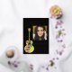 Celebrate your graduate daughter with a vibrant fun black and gold foil graduation announcement card, featuring colourful psychedelic funky guitar artwork. The design showcases a bold, acoustic guitar with funky swirling psychedelic patterns, capturing a fun, energetic vibe. Accented with gold foil and black calligraphy and musical notes, it perfectly reflects the excitement of the occasion. The front highlights your daughter’s name and graduation details in contemporary white typography, while the back offers space for additional grad information. An easy-to-use photo template lets you add a cherished image, making it a personal keepsake. Designed by artist Catherine Sweetman, this card blends artistic flair and modern elegance, making it the perfect way to celebrate her milestone in style.