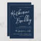 Modern fun handwriting couples names navy wedding invitation