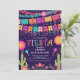 Bright & fun let's fiesta adult birthday party invitation featuring bunting flags, flowers, confetti & cactus plants.