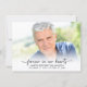 Modern Funeral Memorial 3 Photos Thank You Card. Send thanks for the kindness and compassion shown during your difficult time with this modern photo thank you card. The design features 3 pictures (two on the front and one on the back), stylish swash script typography and an editable message area for your custom text. The back side features a full bleed photo with FOREVER IN OUR HEARTS and name and dates as a keepsake. ASSISTANCE: For help with design modification, transferring the design to another product or if you would like coordinating items, contact the designer BEFORE ORDERING via the Zazzle Chat MESSAGE tab or email makeitaboutyoustore@gmail.com.