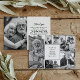 Commemorate a beloved life with this heartfelt memorial card, featuring a collage of black and white photos on the front and a sincere thank-you message on the back. The front design beautifully arranges six cherished photos around a central panel that honours the memory of your loved one with customisable text for their name and dates of life. The back of the card continues the personalised touch with a warm photo, alongside a thoughtful note of appreciation to those who have offered support during a difficult time. This customisable memorial card serves as a touching tribute and a way to express gratitude to friends and family.