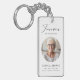 Carry the memory of your loved one with you everywhere you go with our Modern Funeral Memorial in Loving Memory Keychain. This personalised keepsake keychain is a heartfelt way to honour and remember those who have passed. The keychain features a photo of your loved one, surrounded by a sleek and modern design. The words "Forever In Our Hearts" serve as a reminder of the everlasting love and cherished memories you shared. It is a thoughtful and meaningful way to keep their memory close, whether you attach it to your keys, bag, or backpack. This keychain also makes a touching gift for family members, friends, or anyone who wants to remember a special person in their life. Keep their memory alive and honour their legacy with our Modern Funeral Memorial in Loving Memory Keychain.
