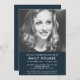 Modern, simple funeral invitation to invite friends and family to join you in the celebration of your loved one's life in a modern minimalist design style in navy blue. The invitation can easily be personalised with your own photo and text to create a special invitation for your loved one's funeral, memorial or celebration of life. The image shown is for illustration purposes only to be replaced with your own photo. The placeholder image is of a beautiful woman with wavy blonde hair shot in monochrome sepia black and white. If you need any help personalising this product, please contact me using the message button below and I'll be happy to help.