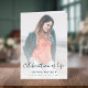 Modern, minimalist photo folded order of service funeral program to celebrate the life of your loved one in a minimalist clean simple design style featuring a handwritten script font and a soft dove grey background. The program can easily be personalised with your own photo and text to create a special tribute for your loved one's funeral, memorial or celebration of life. The image shown is for illustration purposes only to be replaced with your own photo. The placeholder image shows a young woman with long wavy brown ombre hair wearing a leather jacket, orange lace top and white jeans. #funeral #orderofservice