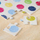 Modern, funky pink flamingo jigsaw puzzle with a whimsical, retro shabby chic vintage look pink flamingo on a modern colourful grunge polka dots pattern background. A fun, cute, original gift for women and children.