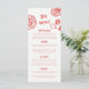 Our one-of-a-kind hand drawn wedding menu is truly *chefs kiss*. This design features a fun and eclectic typography that imitates natural handwriting, with custom-made illustrations, perfect for representing your reception and dinner party. This version includes bold pops of red.