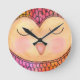 Modern Funky Sleepy Owl Mixed Media Painting Round Clock