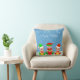 Modern funny cute Christmas elf buddies dressed in red and green on sky blue Pillow. Text can be personalised. Merry Christmas!