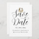 Make your wedding truly unforgettable with this playful dinosaur-themed “Save the Date” card featuring a charming T-Rex bride and groom in soft watercolor style. Designed for fun-loving couples, this unique card blends whimsical romance with modern elegance, pairing the adorable dinosaur illustration with stylish script typography for a memorable first impression.