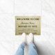 This is Modern Welcome Personalised doormat. This is a great gift for newlyweds or new homeowners. This personalised welcome doormat in chic and durable black features "welcome" in modern, elegant handwritten calligraphy script. Personalise with your family name and year established year.