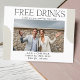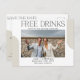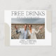 This save-the-date postcard is perfect for the fun-loving couple eager to share their big day! Featuring a modern "Free Drinks (and We're Getting Married)" design, this customisable card includes your photo, names, wedding date, and location.