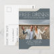 This save-the-date postcard is perfect for the fun-loving couple eager to share their big day! Featuring a modern "Free Drinks (and We're Getting Married)" design, this customisable card includes your photo, names, wedding date, and location.