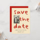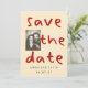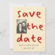 A playful and modern photo save the date featuring bold scribble-style typography and a customizable couple photo.