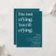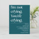 I`m not crying. You`re crying. Modern funny minimal design on deep teal background with trendy typography. The text can easily be personalised for a unique one of a kind design for your special day.