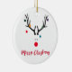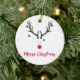 Modern funny reindeer on white Merry Christmas Ceramic Ornament