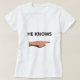 Modern He Knows funny text & pointing hand T-Shirt. Text can be personalised.