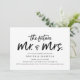 This engagement party invitation features the words "the future Mr. & Mrs." in a modern black handwritten script with a black watercolor background on the back.