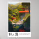 Modern Garden House Poster Waterfall Path, Lush Forest & Reflective Pond – Japanese Wall Art