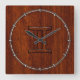 Modern Gemini Zodiac Symbol on Mahogany like print Square Wall Clock