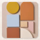Protect your furniture in style with this unique coaster. Features a modern geometric abstract design in warm terracotta, mustard yellow, and soft blue—perfect for mid-century modern desks and coffee tables.