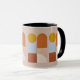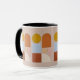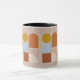 Sip your morning coffee in style with this unique mug. Features a modern geometric abstract design in mustard yellow, terracotta, and soft blue—perfect for mid-century modern kitchens and aesthetic desk decor. The black handle and interior provide an elegant, professional contrast.