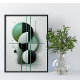This striking abstract artwork features a harmonious blend of geometric shapes, soft gradients, and sleek metallic lines in a sophisticated colour palette of emerald green, black, and white. The dynamic composition of circles, lines, and textures creates a visually captivating modern aesthetic, making it perfect for stylish home décor or stationery. Ideal for lovers of minimalist, contemporary, and abstract art, this unique design adds a touch of elegance and sophistication to any product.