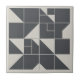 This minimalist tile design features a dynamic abstract pattern in black and ivory white. The pattern of nested square and triangular shapes, gives a contemporary look to any home renovation. Great in small spaces to make a dramatic tile statement this versatile look brings a modern aesthetic to any room. Search ID1192 to see other products in this unique design set. Note: design may contain generative content