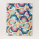 A summer vibrant geometric pattern, composed with hexagon, squares, cubes, triangles lines and stripes shapes and gold strokes. This abstract graphic pattern illustration, symmetric, creative, fashion trend decorative design is great for home decor and every day wear. Filled with mustard yellow, iced mango, living coral, blueberry pancake, carnival glass, aqua blue, dark blue and white bright happy colours. A stylish, trendy, cheerful, happy design, original artwork image.