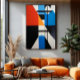 Pure geometric shapes and vibrant colours arrange themselves in balanced compositions, where mathematical precision converses with abstract freedom. This work celebrates modernity's complex simplicity, transforming basic elements into a striking visual language.