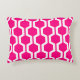 Geometric pattern accent pillow in Hot Pink. Made in the U.S.A. Decorative throw pillows with geometric design covers in modern colours. Highest quality cotton or polyester. Perfect for the living room couch, family room or bedroom. Machine washable.