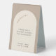 This modern wedding table sign lets wedding guests know where to sign your guestbook. Simple design with minimal font - perfect for a modern wedding, minimal wedding or any other celebration. This wedding sign template features a sand beige background and and an arch in cream white. All text elements and colours of this wedding menu card can be customised. Additional matching items are available in the store. Also available in the colorway Terracotta.