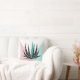 Modern geometric background with white blue and pink colours featuring black and turquoise-blue aloe vera illustration.