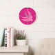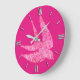 Modern Geometric Bird, Fuchsia and Light Pink Large Clock