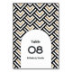 Elevate your wedding decor with this chic modern geometric table number card. Featuring bold black and white patterns accented with shimmering gold details and elegant typography, this design is perfect for contemporary weddings that embrace sleek and stylish aesthetics. Personalise with the couple’s names and table numbers to create a memorable and cohesive wedding theme. Ideal for minimal and modern wedding celebrations.