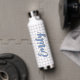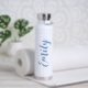 Customisable water and drinks bottle. Modern, black and white design, personalised with the name of the recipient in a gorgeous dusky blue.