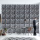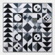 Modern throw pillow with geometric contemporary pattern featuring textured fabric-look patchwork design. Black, white, and grey shapes with quilted and smooth fabric textures. Contemporary abstract mid-century style perfect for modern living room, minimalist decor, or Nordic aesthetic. Monochrome design.