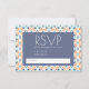 Modern Geometric Botanical Blue Orange Wedding RSVP Card