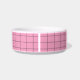 Modern geometric monochrome grid pattern bright pink customisable pet bowl gift cute accessory. Ideal gift for the pet owner in your life, personalised with the pets name in a modern check pattern.