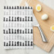 Classic black and white chess kitchen towel for chess lovers, featuring chess figures in a geometric pattern. Modern chess pieces design