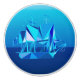 Knob in a geometric digital painting of a clipper ship in shades of ocean blue, from light aqua to deep cobalt