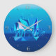 Mid-Century Modern clock - geometric digital painting of a clipper ship in shades of ocean blue, from light aqua to deep cobalt