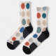 Step into modern style with these eye-catching geometric pattern socks. Featuring a seamless arrangement of circular, coin-inspired motifs in calming blues, warm rust, soft beige, and neutral tones, this design blends mid-century charm with contemporary minimalism. The clean lines and textured details give these socks a sophisticated yet playful look—perfect for everyday wear, creative professionals, or anyone who loves subtle statement accessories. Comfortable, stylish, and versatile, they pair effortlessly with both casual and dress outfits.