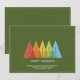 Simple modern Christmas Holiday card featuring a row of colour overlapping Christmas tree graphics. Minimalist typography. Clean simple design. All text areas personalizable. Contact for assistance in personalising or customising to your individual wishes. Happy holidays!