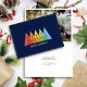 Simple modern folded Christmas Holiday card featuring a row of colour overlapping Christmas tree graphics and family photo. Minimalist typography. Clean simple design. All text areas personalizable. Contact for assistance in personalising or customising to your individual wishes. Happy holidays!