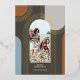 Modern geometric 1 photo golden arch holiday card. The design features an overlapping golden arch pattern with one arch photo frame. Designed by Moodthology Papery.