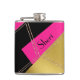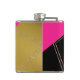 Stylish drinking flask done in a modern look of black, gold and hot pink, with golden glittery triangle accents. Black text is ready to personalise. Lovely gift idea for her.