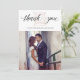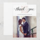 This elegant, stylish wedding thank you card features a faux rose gold look diamond over the words "thank you" in modern calligraphy. Add your favourite wedding photo to complete the look.