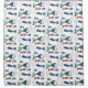 Modern geometric fish pattern in green blue and coral.