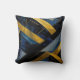 A striking geometric abstract design featuring a dynamic interplay of shapes and colours. Predominantly, the artwork utilises bold and vivid shades of blue, ranging from deep navy to lighter cerulean, intertwined with contrasting elements of rich gold and black. Angular, overlapping planes create a sense of depth and movement, with sharp lines and textured surfaces adding to the visual complexity. The gold segments, in particular, stand out with a metallic sheen, introducing a luxurious touch to the composition. This modern and sophisticated design will add a bold statement to any throw pillow, making it a perfect accent piece for contemporary interiors.