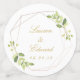 Custom-designed wedding table confetti featuring modern stylish geometric gold frame and watercolor greenery design. Personalise with bride and groom's photos, names, and wedding date. Perfect for decorating wedding reception, rehearsal dinner, and engagement party tables.